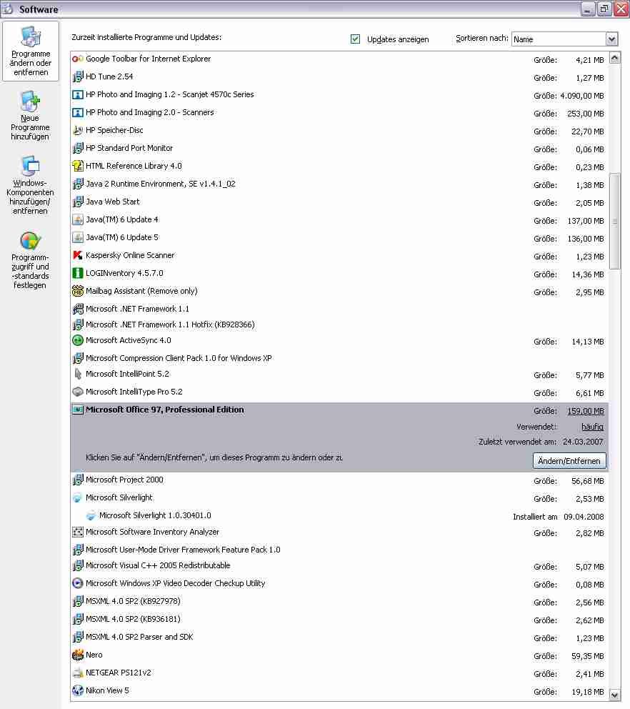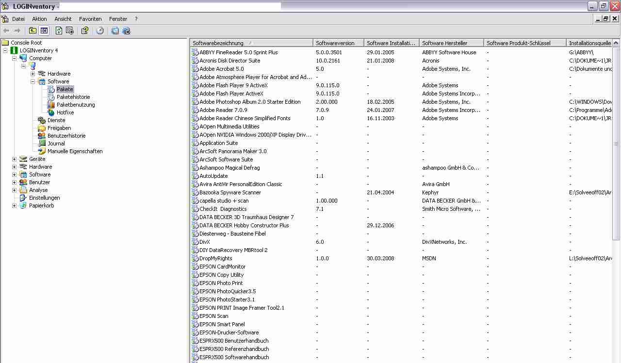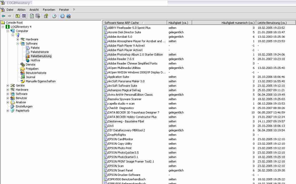 Über die Systemsteuerung von XP erhält man eine komplette Liste der installierten Programm, auf Wunsch mit der Anzeige von Updates und mit der Anzeige der Nutzungshäufigkeit. Nicht angezeigt werden jedoch Programme, die lediglich als ausführbare Datei geladen wurden und nicht per Setup oder Install mit XP verankert wurden. Nachteilig ist, dass es keine Exportfunktion oder Druckfunktion gibt. Man kann die Liste nur am Bildschirm betrachten. Aus dem Bereich der professionellen IT kommen Programme, die ein sogenanntes Software-Inventory erstellen. Zwei sehr gute Programme lassen sich als Trial kostenlos laden und haben ausreichende Funktionalität für eine private Bestandsaufnahme:PC Inventory Advisor hat gegenüber der Systemsteuerung den grossen Vorteil, dass man auf einer Seite neben den installierten Programmen auch den Inhalt des Verzeichnisses 'Programme' und die residenten Programme sehen kann. Man hat damit einen wesentlich besseren Überblick über alle Anwendungen, als mit der Systemsteuerung. In der Trial-Version lassen sich jedoch auch mit diesem Programm keine Listen exportieren. Dazu müsste man eine Lizenz für 89$ erwerben. (http://www.clearapps.com/)LOGINventory zeigt ebenfalls die installierte Software, zusätzlich die Nutzungshäufigkeit – identisch zu den Angaben in der Systemsteuerung - und ausserdem lässt sich die Liste auch in der Trial-Version extrahieren. (http://www.loginter.net/de/)Nach der Bestandsaufnahme sollte man sich anhand der Liste entscheiden, welche Applikationen auf dem neuen Rechner zur Verfügung stehen sollen. Die üblichen Verdächtigen stehen normalerweise ausser Frage: Antivirus, Office-Anwendung, EMail-Programm.Software, die man zusammen mit Hardware-Komponenten oder Peripheriegeräten erhält ist im Gegensatz dazu meistens optional. Beispiele:1. Digitalkameras kommen häufig mit Bildbearbeitungsprogramm, Panorama-Maker, etc. Benötigt man diese wirklich, oder nutzt man nicht sowieso Adobe Photoshop oder Gimp? Benötigt man die Treiber für die USB-Schnittstelle zur Kamera, oder tauscht man die Daten über einen Card Reader aus?2. Mainboards oder Grafikkarten liefern oft z.B. einen DVD-Player oder andere Goodies mit. Normalerweise vollkommen unnötig.Die Installation der wirklich nötigen Applikationen wird sich auf die folgenden Pakete beschränken lassen:1. Antivirus 2. EMail-Programm 3. Office-Programm 4. Bildbearbeitung 5. CD/DVD-Brennprogramm 6. Druckertreiber und Software zur Unterstützung des Druckers Wir empfehlen, die Installation der Anwendungen so weit wie möglich von einer Festplatte, z.B. einer externen USB-Platte, durchzuführen. Legen sie sich ein Software-Archiv an. Bei Freeware stellt sich die Frage erst gar nicht, diese kann ausschliesslich als Download-Paket bezogen werden. Die käuflichen Antiviren-Programme sind auch per Download erwerbbar. Die Software, die mit Druckern mitgeliefert wird, kann in der Regel kostenlos aus dem Internet geladen werden. Auch CD/DVD-basierte Installationen lassen sich in der Regel von einer Festplatte durchführen, wenn der Inhalt der Datenträger auf diese kopiert wird. Legen sie sich zusätzlich eine Liste mit den Lizenzschlüsseln an, damit eine Neuinstallation ohne grosse Hindernisse erfolgen kann.Die Installation von der Festplatte ist schneller als von CD/DVD und kann oft unbeaufsichtigt erfolgen, wenn keine Lizenzschlüssel eingegeben werden müssen, z.B. bei Freeware. Die Installation der Programme aus der obenstehenden Liste kann dann in ca. einer Stunde beendet werden. |