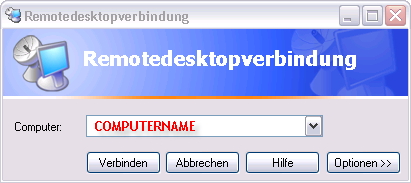 Leider kann man ohne professionelle Terminal Server Software nicht nach Computern für eine Remotedesktopverbindung suchen. Den Computernamen muss man manuell auf dem entfernten Gerät nachsehen. |